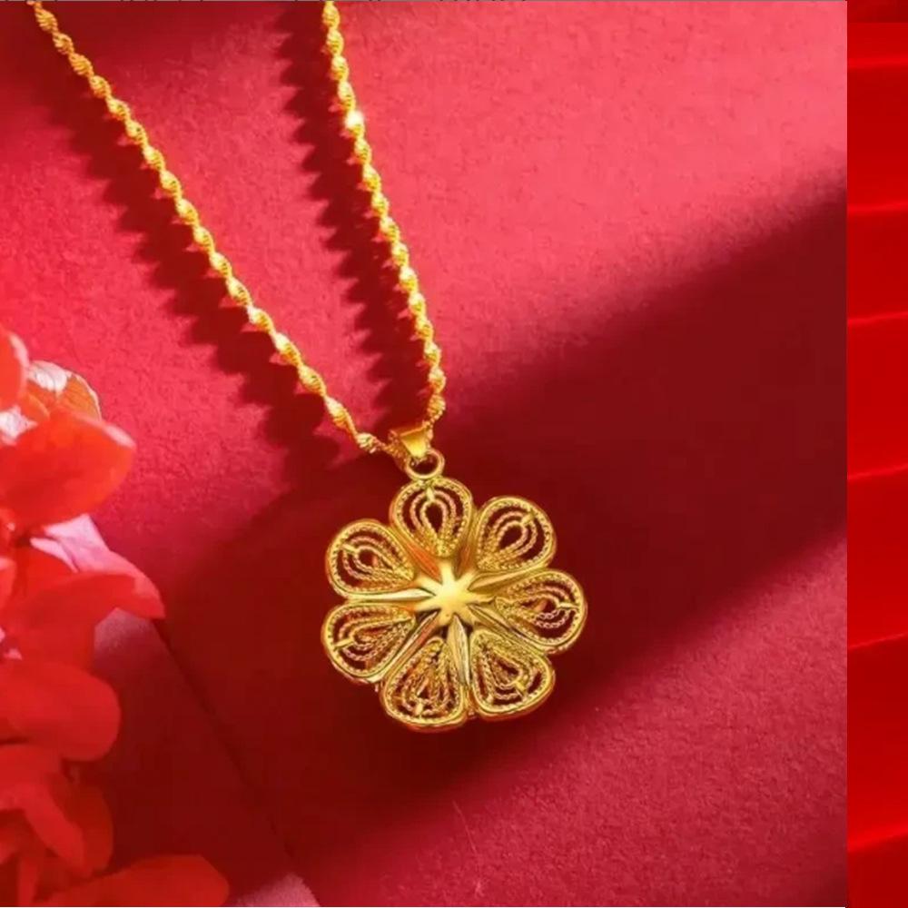 Blooming Wealth Longevity Lock Pendant with Gemstones On Black Rope Necklace