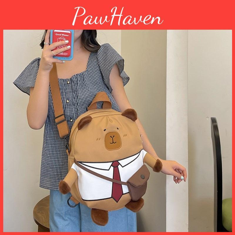 Cartoon Capybara Panda Backpack Student Cute Bag Multiple Storage Compartments