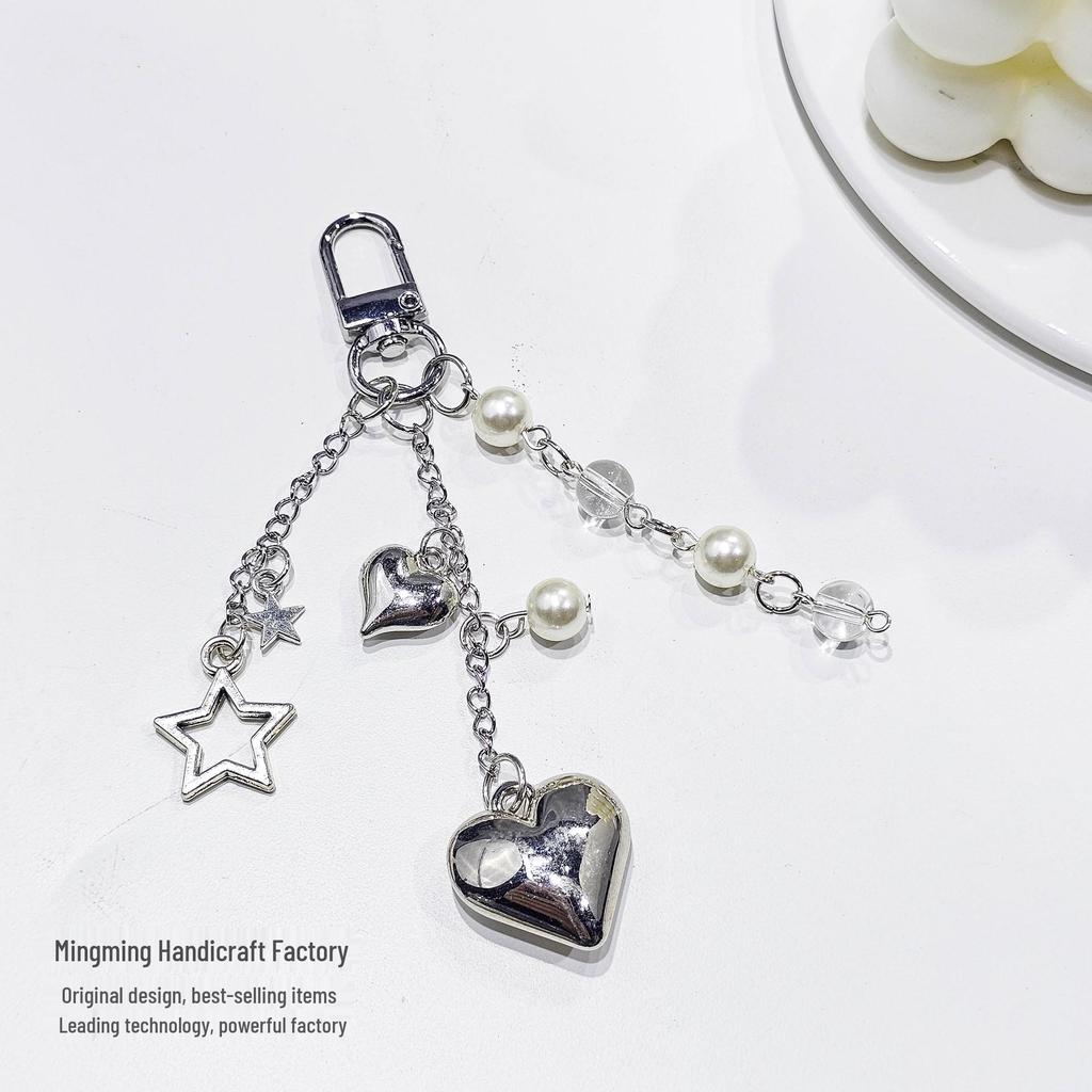 Korean Heart Pearl Bow Chain Pendant Keychain for Mobile Phones