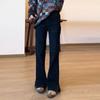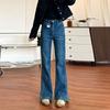 WTEMPO Elastic Slit Micro Flared Jeans for Women Plus Size High Waist Slimming Straight Leg Pants