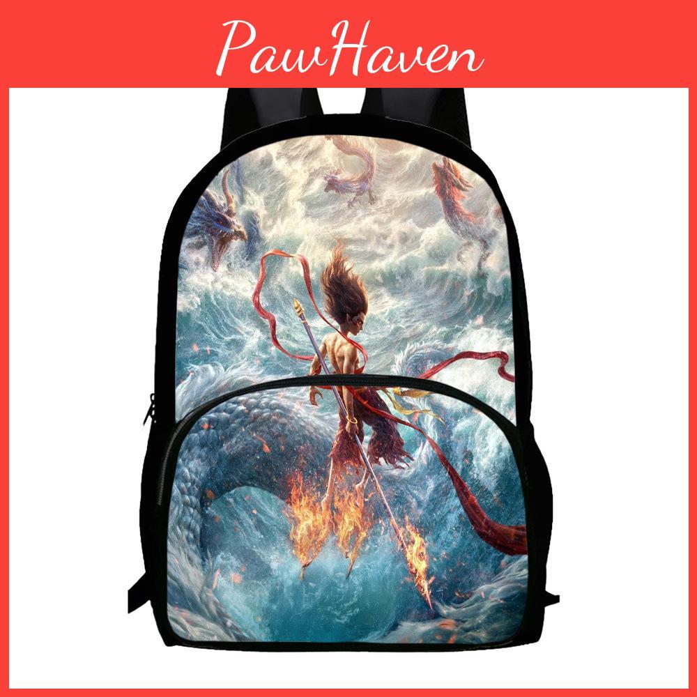 Nezha Durable Backpack Oxford Bookbag For School Use Large Capacity Gift Bag