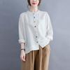 Early Autumn Women's Cotton and Linen Shirts, Niche Chic Long-sleeved Tops, Women's Disc Buttons, Retro Literary Loose Shirts