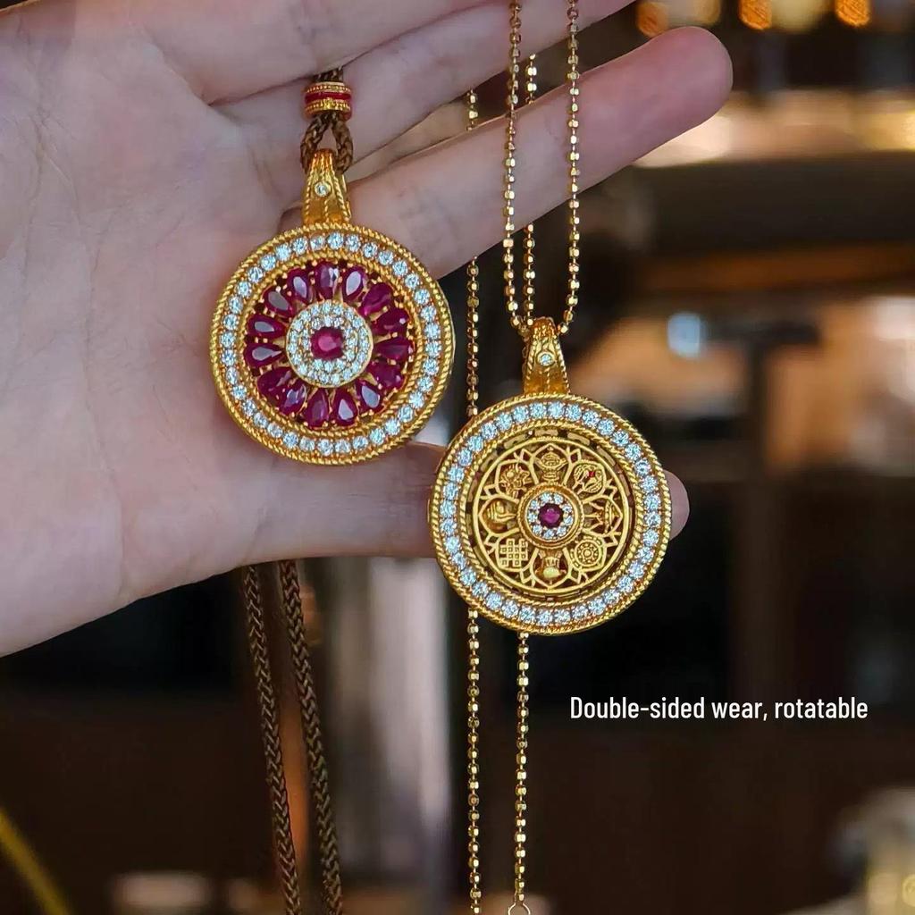 Gold-Plated Rotatable Diamond Rose Compass Pendant Necklace