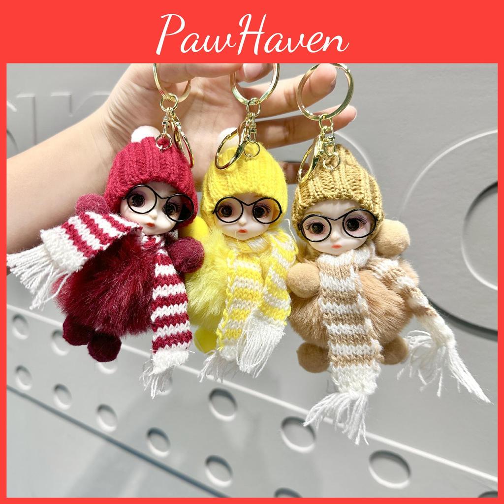 Fun Big Plush Eye Doll Keyring Colorful Scarves Unique Accessory For Bags Keys And