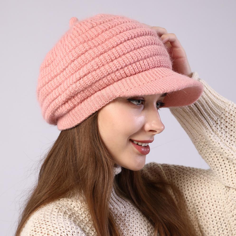 Autumn and Winter Women's New Striped Knitted Peaked Cap Plus Velvet Thickening To Keep Warm and Cold Proof Fashionable Woolen Hat Beret