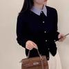 Spring Models False Two-piece Knitted Cardigan Sweater Female Temperament Commuter Spell Shirt Collar Single-breasted Cardigan Female