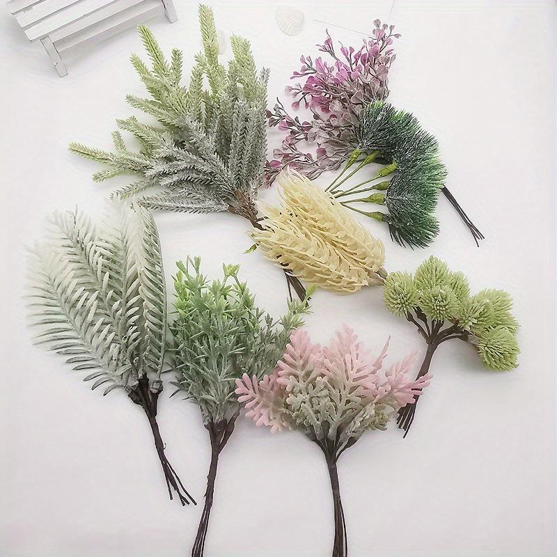 3Pcs Simulation Flower DIY Headdress Accessories Succulent Flocking Iron Leaves Pine Branches for Outdoor Patio Garden Wedding