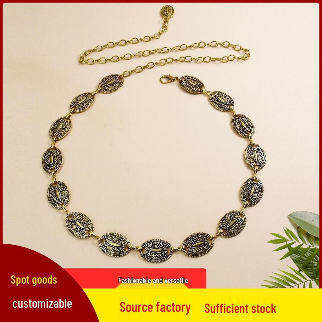 Vintage Floral Engraved Thin Metal Waist Chain - Fashionable Versatile Body Chain Belt