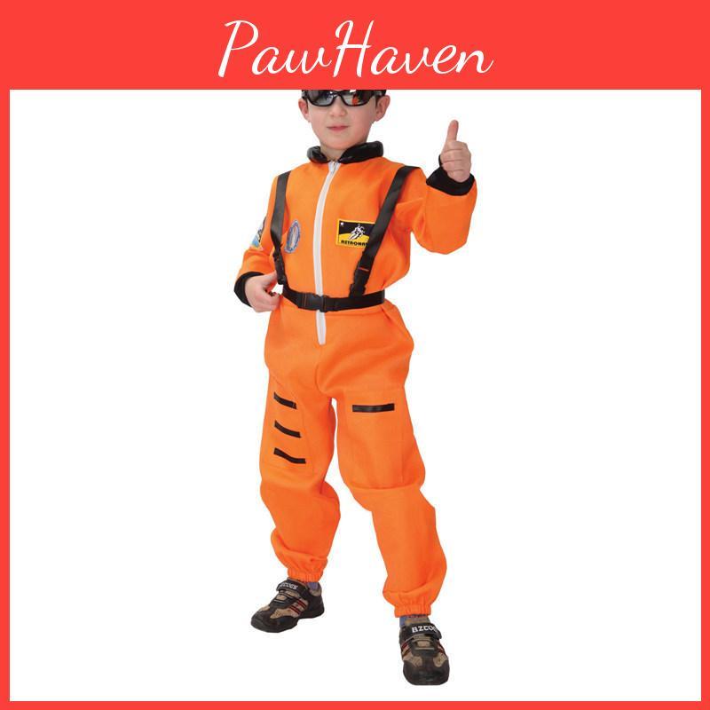 This children's astronaut costume features a polyester and acetate blend fabric, providing durability and comfort for play and performances. available in sizes S to XL, and is designed with vibrant orange and white colors. Ideal for Halloween costumes, space-themed events, or role-playing activities, it supports imaginative scenarios and brightens any costume collection. Wipe clean with a damp cloth to maintain its appearance.