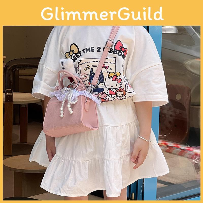 Spliced Design Minimally Children Casual Single Shoulder Square Bag With Pendant