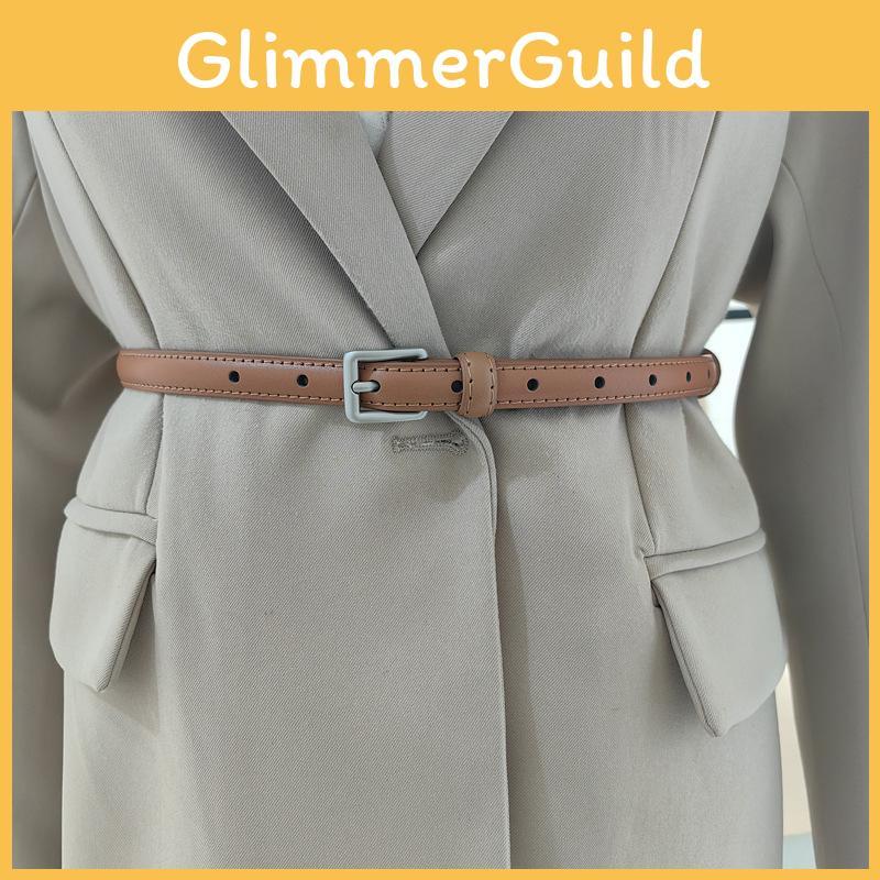 Square Solid Buckle Color Leather Thin Waist Belts Fashionable Casual Gifts