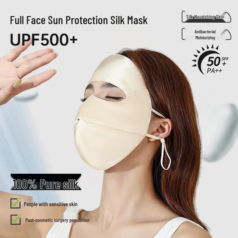 100% Mulberry Silk Facekini: Anti-UV, Sensitive Skin Protection, Summer Full Face Sunscreen Mask for Women