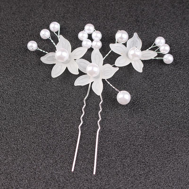 Korean Frosted Flower Pearl Hairpin & Comb Set for Brides