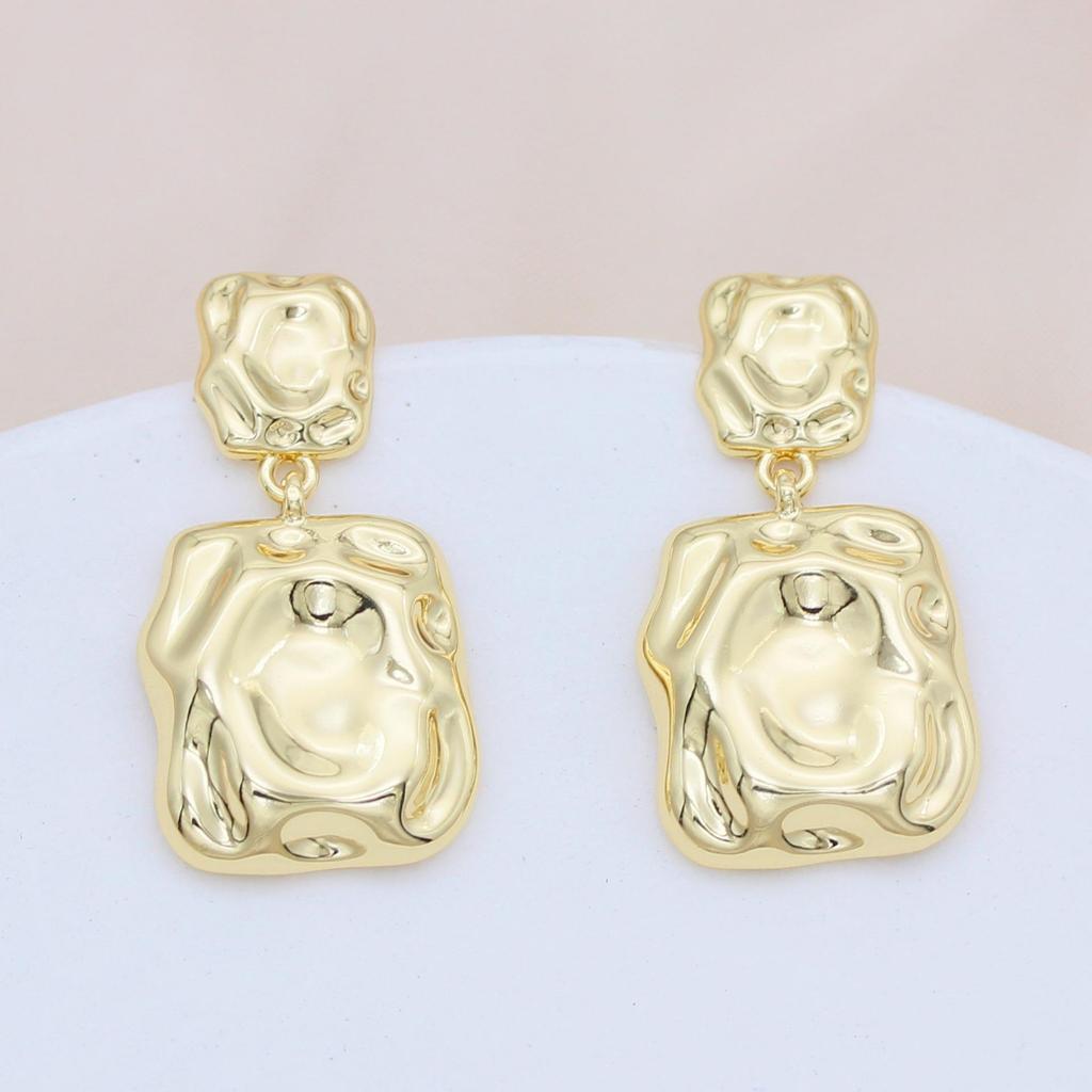 Gold-Plated S925 Silver Geometric Square Textured Earrings