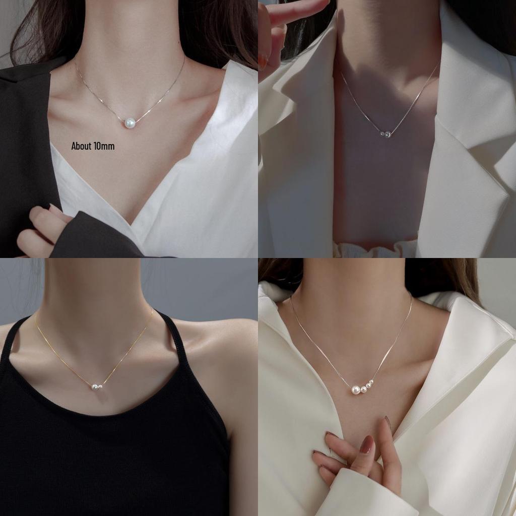 925 Sterling Silver Pearl Necklace - Gradient Clavicle Chain for Women, Autumn/Winter Fashion, Light Luxury High-End Sweater Accessory