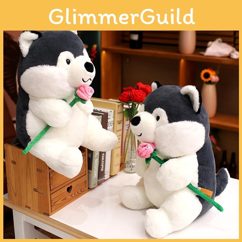 Cartoon Handheld Cute Rose Husky Plush Stuffed Toy Pillow For Decoration Room