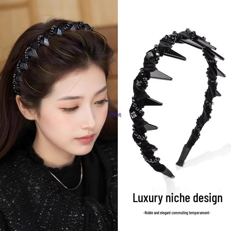 Louis Temperament Rhinestone Skull Top Wavy Headband for Women 2025 - Stylish, with Teeth for Face Washing