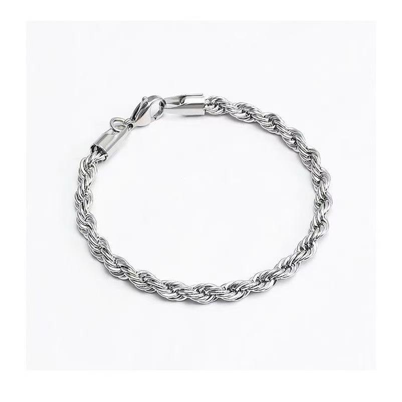 Trendy 4mm Silver-Plated Rope Twist Bracelet for Women – European & American Style