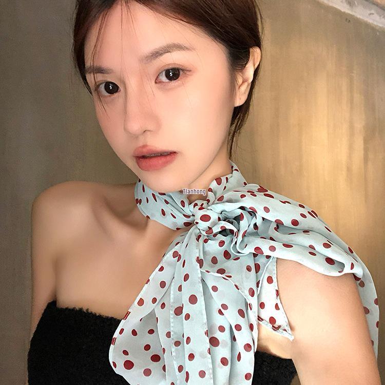 2025 New Women's Versatile French Polka Dot Silk Scarf: Spring/Summer Long Neck Tie & Headband