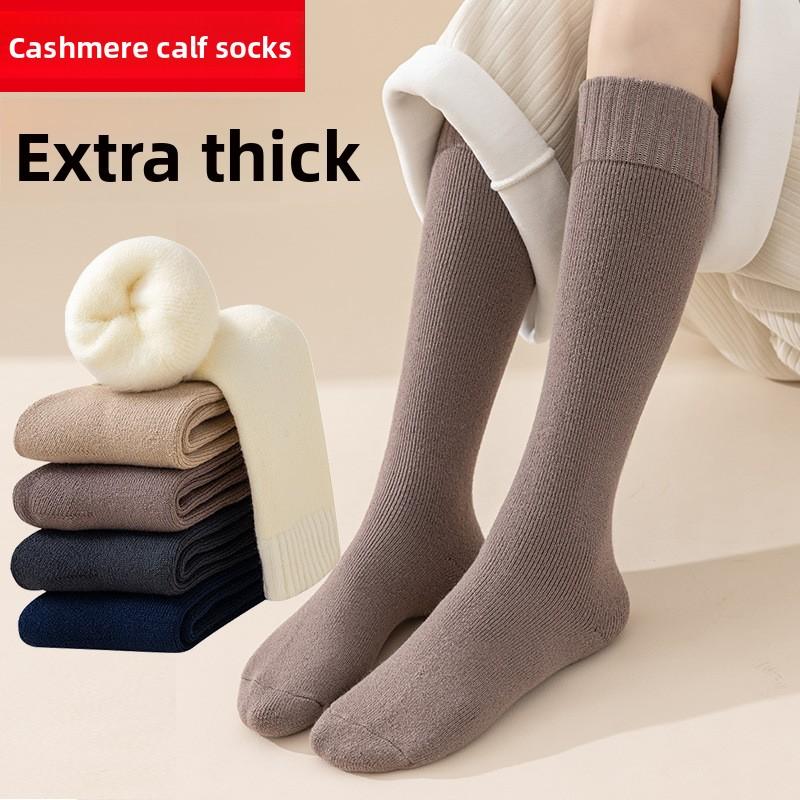 Women's Calf Socks for Autumn and Winter Warmth, Thickened and Fleece Socks, Cashmere Fleece High Thigh-high Long Socks, Knee-length Wool Socks
