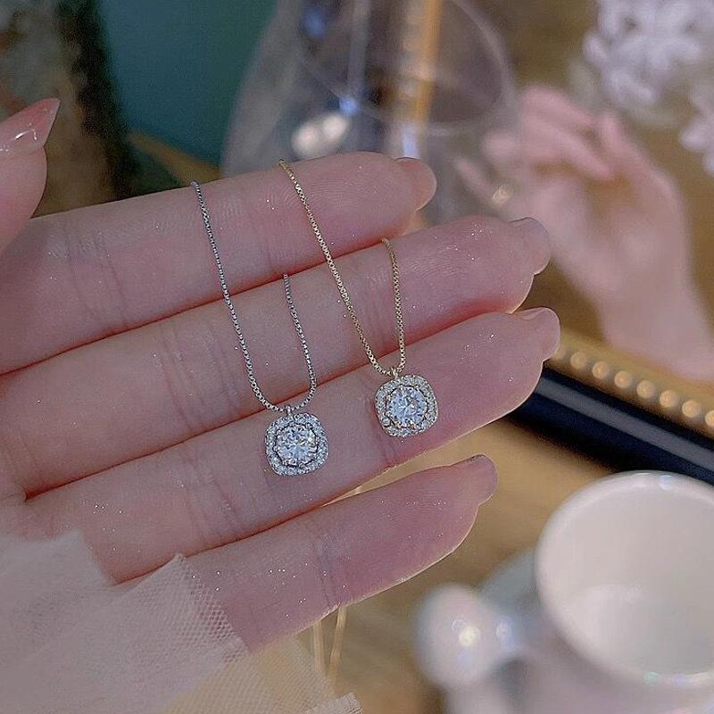 Elegant S925 Sterling Silver Diamond Square Necklace for Women – Luxurious Clavicle Chain Design