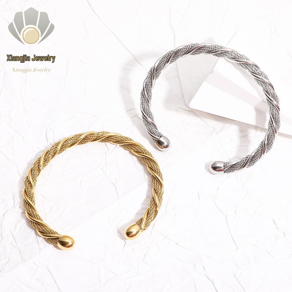 Luxurious European & American Titanium Steel Open Woven Bracelet with Gold Plating