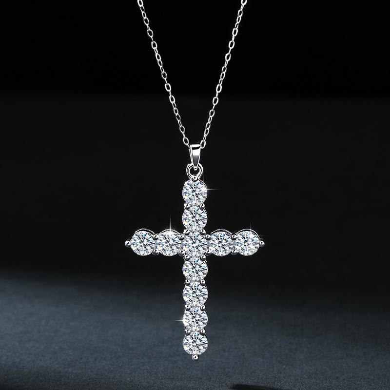 S925 Sterling Silver Moissanite Cross Necklace - European & American Fashion Hip-Hop Pendant for Men & Women.