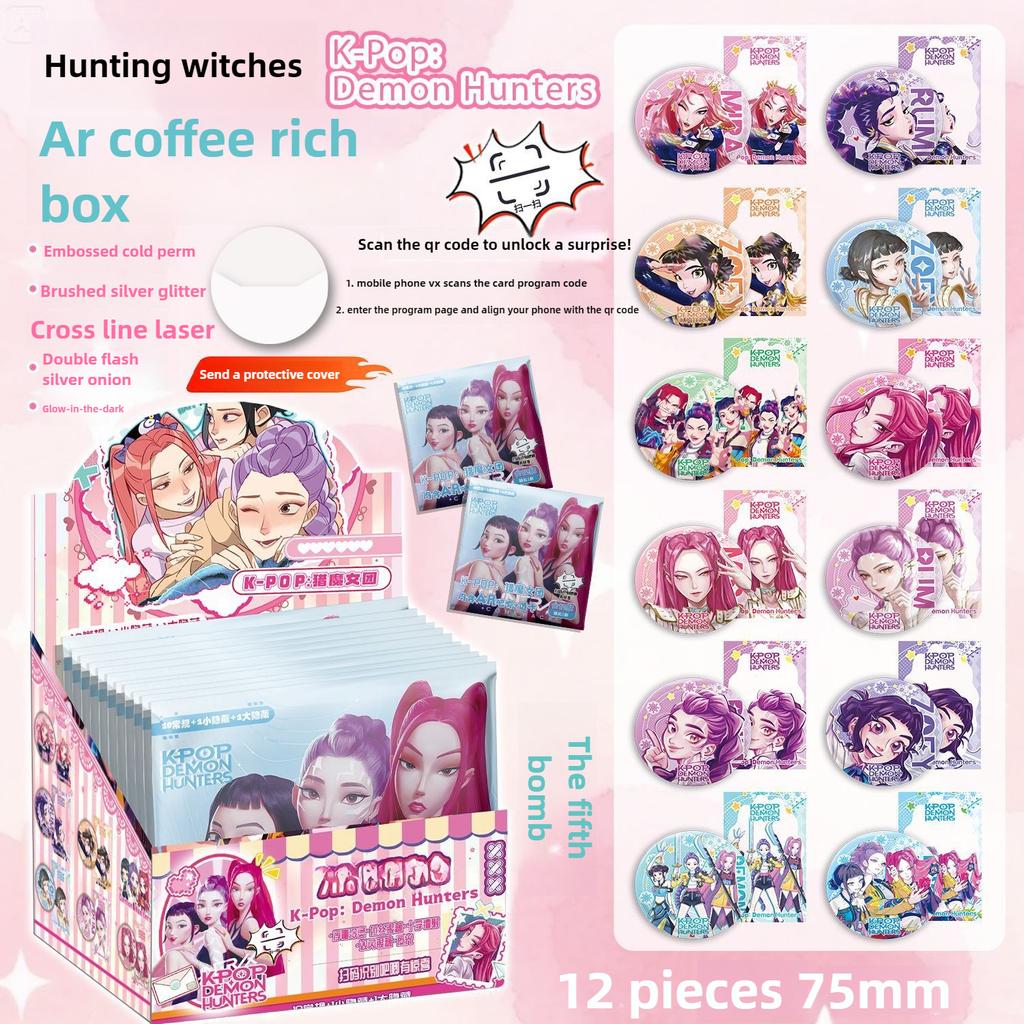 Huntrix K-POP Blind Box, 12pcs AR Glowing Anime Badge Pin Set with Protector, Mystery Collectible Gift for Fans, Christmas Birthday Party Supply