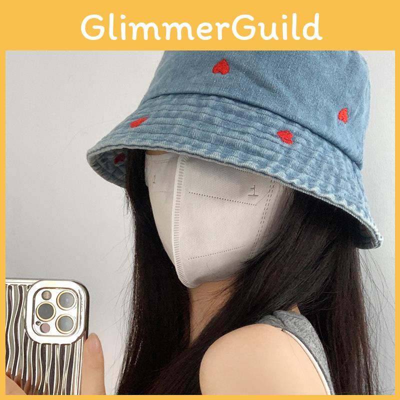 Retro Loving Heart Pattern Fisherman Hat Unisex Denim For Activities Outdoor