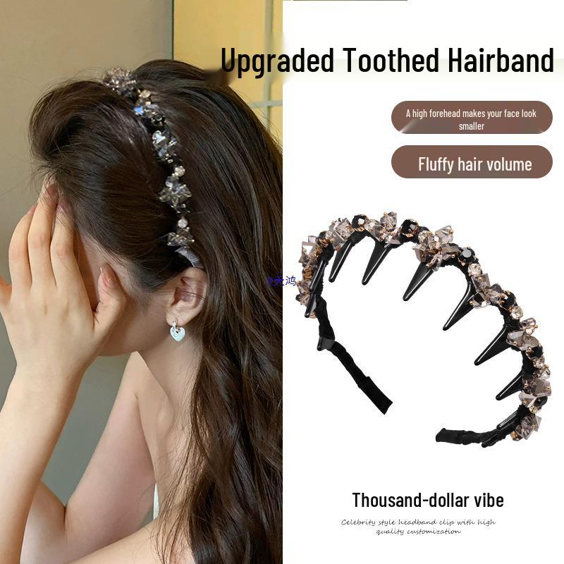 Korean Rhinestone Wave Headband with Teeth - Non-slip, High Skull Top Hair Clip