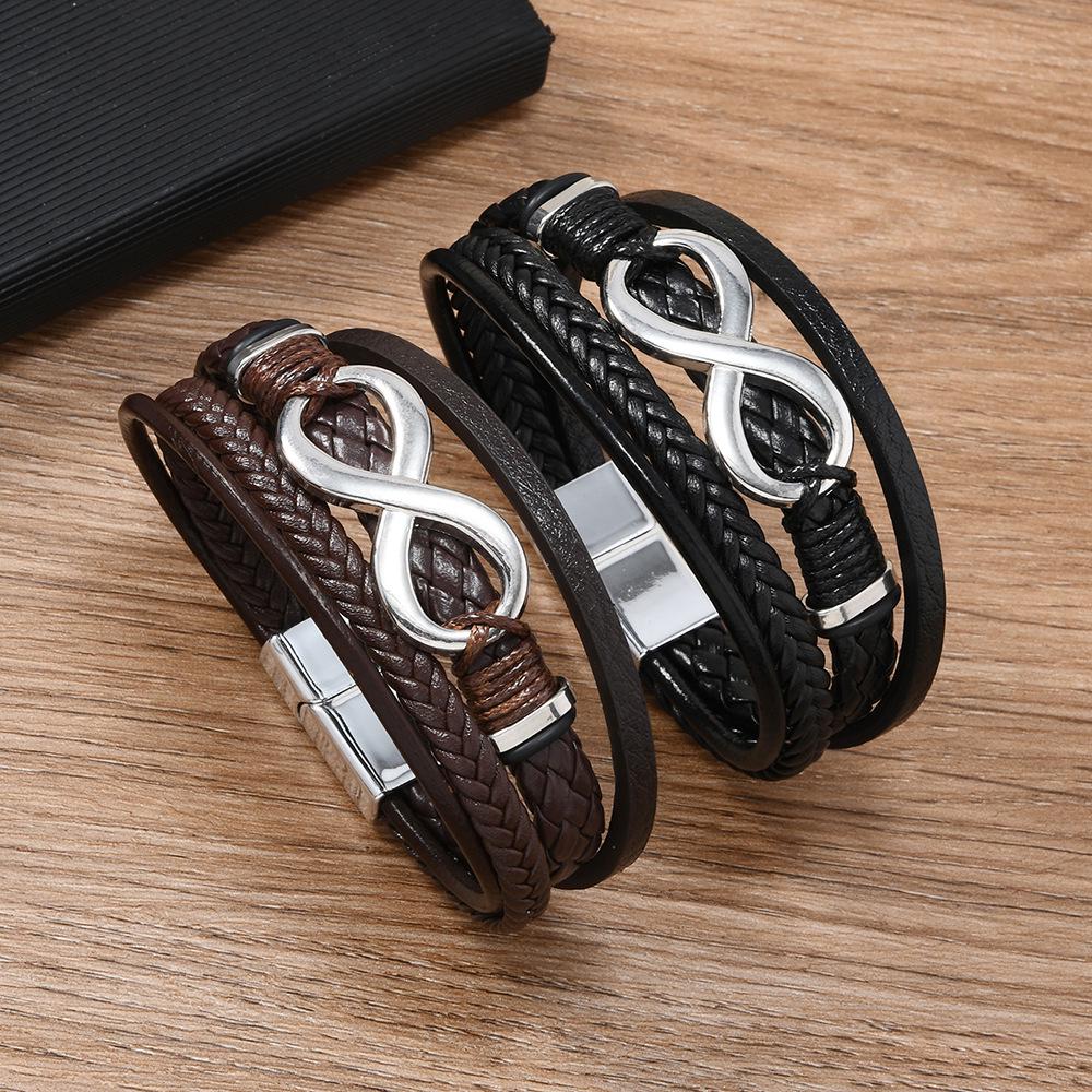 Retro Infinity Symbol Men's Leather Bracelet - Multi-Layer Zinc Alloy