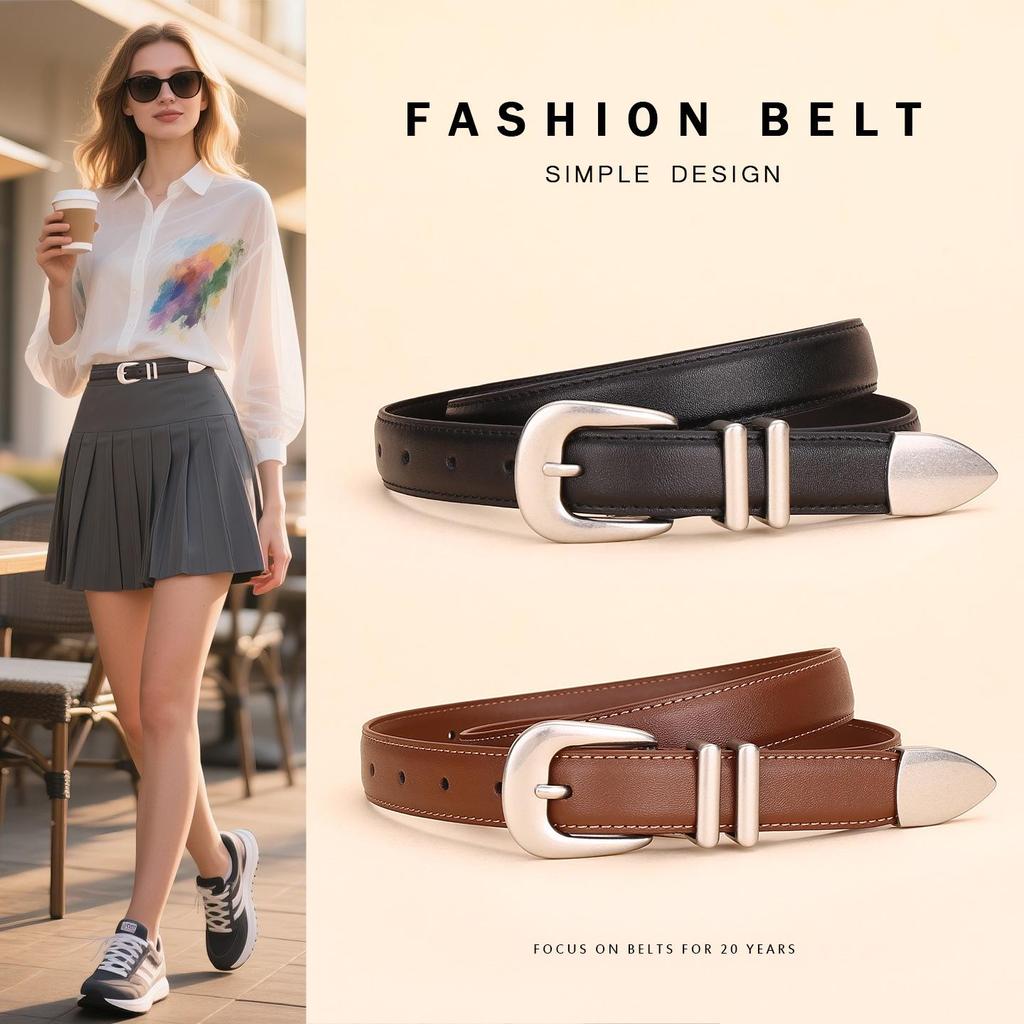 Women's High-End Genuine Leather Belt, Cowhide Design, CleanFit Niche