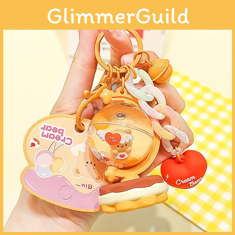 **Embrace Whimsy with the Adorable Cream Bear Floating Globe Keychain**