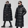 Introducing a stylish and functional winter essential designed for ultimate warmth and comfort. This over-knee, thick winter coat features a luxurious goose down filling, ensuring you stay cozy during the chilliest days. Crafted from high-quality polyester material, it offers both durability and a modern aesthetic. The loose fit allows for comfortable layering, while the hooded neckline provides additional protection against harsh weather. Long sleeves and practical pockets add to the coat's functionality, making it an ideal choice for outdoor excursions. Designed with a unisex couple style, this coat is perfect for women seeking both fashion and practicality in their winter wardrobe.