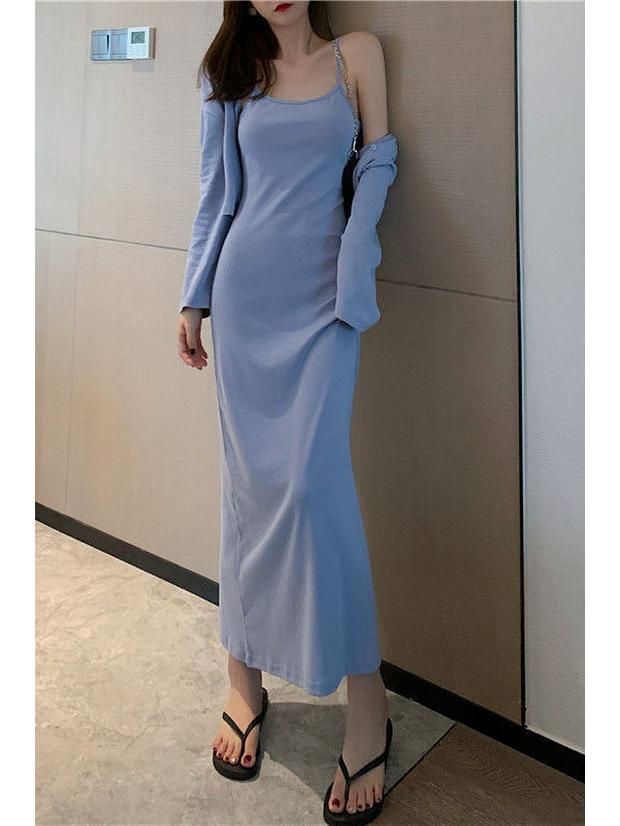 Elegant Long-Sleeved Autumn Two-Piece: Waist-Slimming, Figure-Flattering Dress