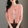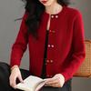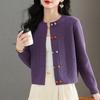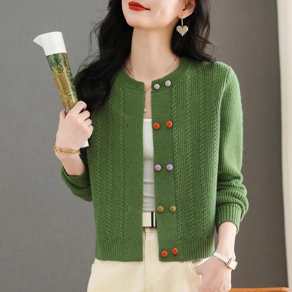 Women's Wool Knit Cardigan - Autumn 2025, Round Neck, Colorful Buttons, Short Sweater Coat