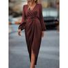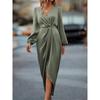 Cross-border Crossover Neckline Ruched Slit Puff Sleeve Irregular Long Sleeve Dress - European & American Style Design