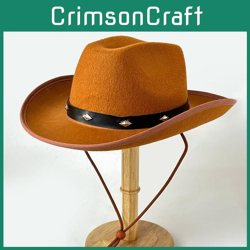 This cowboy hat features a round crown and a wide brim, crafted from modacrylic fiber blends with content, offering durable sun protection. Its deep brown leather finish with metal stud embellishments adds a rugged, stylish appeal. Ideal for outdoor activities across all seasons, it provides reliable shade during sunny days. Wipe clean with a damp cloth to maintain its appearance.