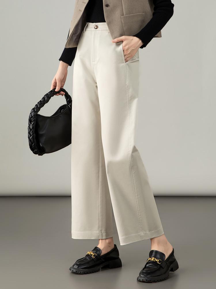 Discover effortless style with these navy blue wide-leg pants, crafted from a premium blend of Tencel and cotton for ultimate comfort and durability. Featuring a high-waisted design, these pants provide a slimming effect while offering a casual, straight-leg fit. Perfect for any occasion, they combine elegance with everyday wearability.