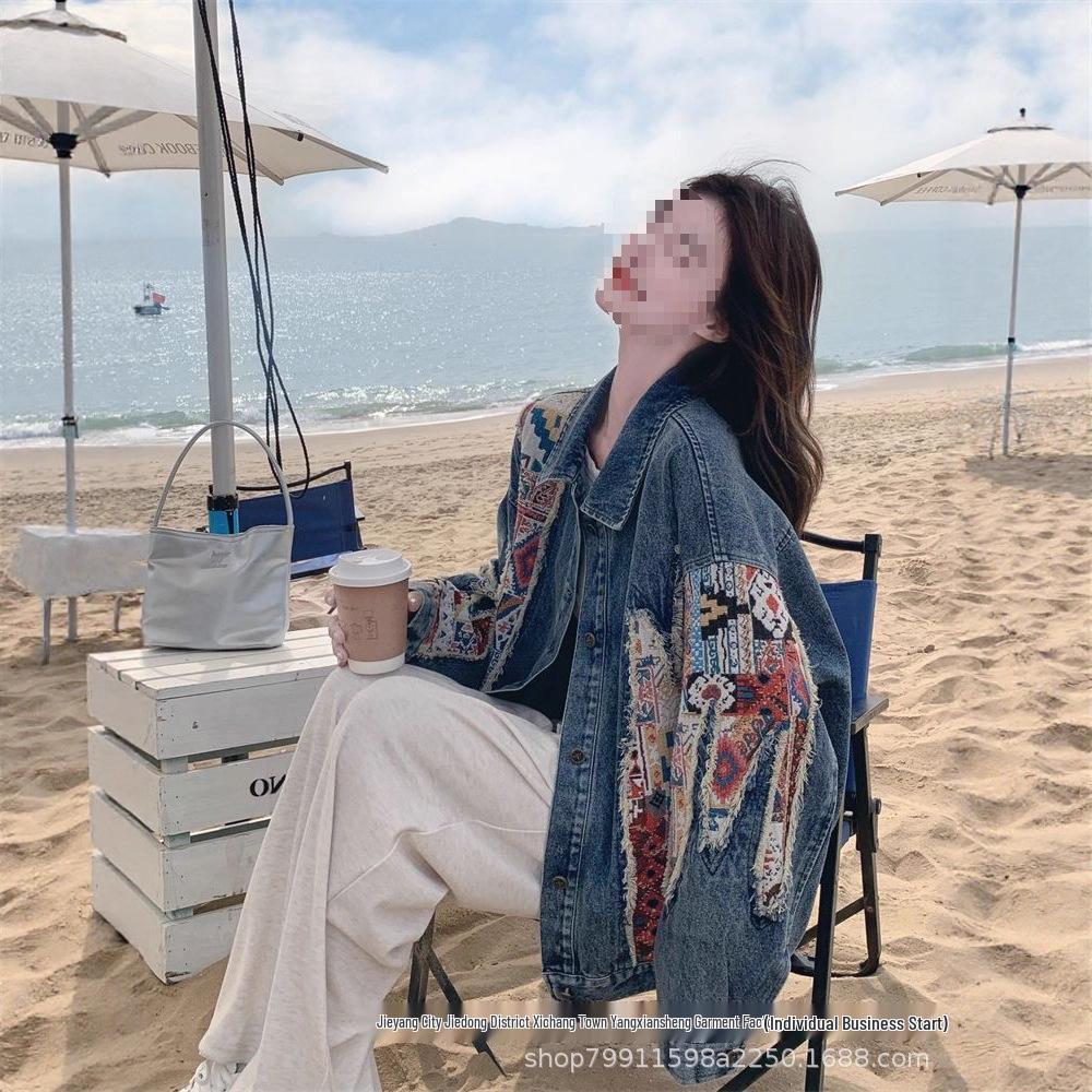 Elevate your wardrobe with this exquisite women's denim jacket, designed for Spring 2025. Crafted from high-quality cotton, it features elegant floral embroidery that adds a touch of femininity to its cool, street-style vibe. The long sleeves provide suitable coverage for transitional weather, while the tailor neckline enhances its sophisticated appeal. Perfect for those who love staying ahead in American niche fashion trends, this jacket seamlessly blends sweet charm with urban edge.