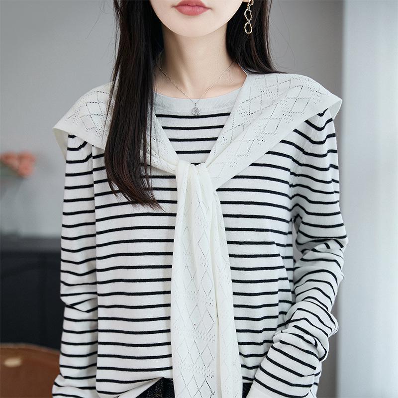 2025 Early Autumn Loose Striped Long Sleeve Wool Knitwear: Stylish Versatile Shawl
