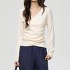 Elevate your autumn wardrobe with this elegant long-sleeve T-shirt designed for a flattering silhouette. Crafted from high-quality cotton, this solid-patterned top features a stylish pleated waist that accentuates your figure beautifully. The V-neckline adds a touch of sophistication, making it perfect for both casual outings and more formal occasions. Enjoy comfort and style throughout the season with this versatile piece.