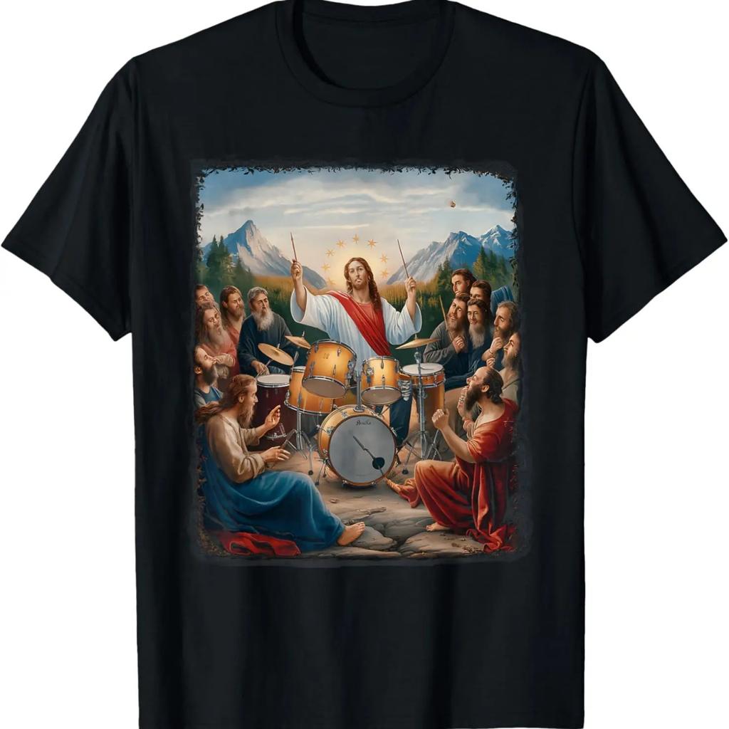 Jesus Playing Drums Funny Christian Drummer Painting T-Shirt