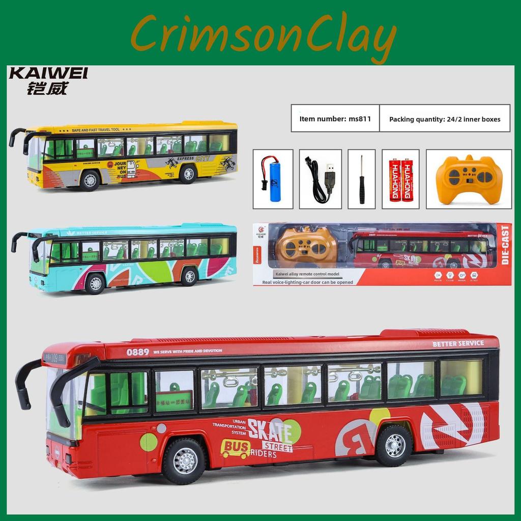 This alloy bus model features a 1:50 scale design, with vibrant red, yellow, and sky blue colors. It supports remote control operation, delivering light effects and authentic sound for engaging play. Ideal for childrens imaginative scenarios and collection displays. Wipe clean with a damp cloth to maintain its finish.