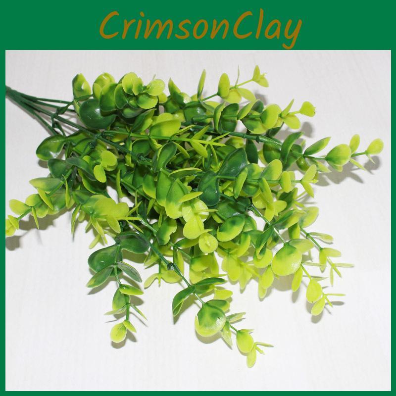 This artificial eucalyptus plant features durable plastic construction with detailed craftsmanship. It showcases large or small leaf varieties, providing a realistic appearance suitable for diverse decor needs.
