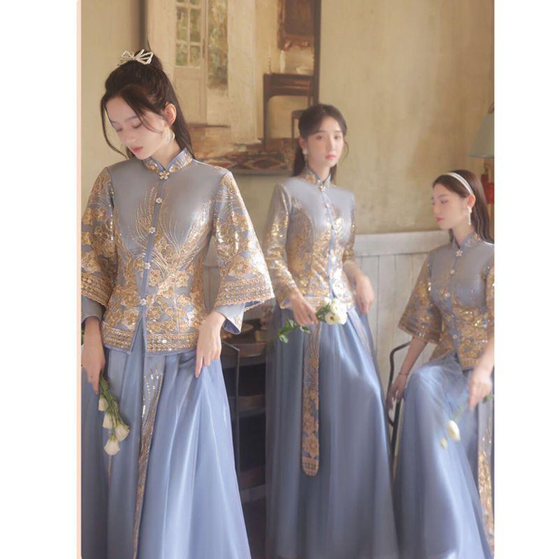 Elevate your bridal party's style with this elegant long bridesmaid gown from the New Chinese Wedding Sisterhood Collection. Designed for the 2025 autumn-winter season, this gown is crafted from a premium spandex blend, offering both comfort and a flattering fit. Perfect for wedding ceremonies and receptions, the dress combines traditional elegance with modern sophistication, making it an ideal choice for celebrating timeless moments in style.