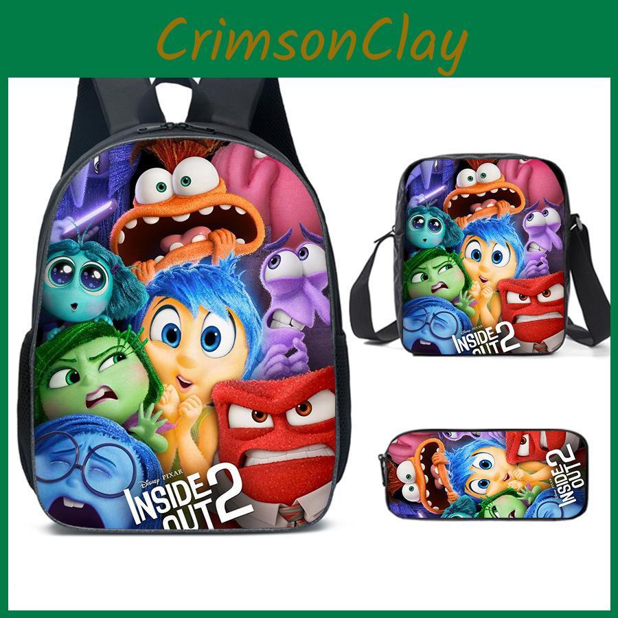 This set includes a 17-inch school backpack, a crossbody bag, and a pencil case, all featuring colorful "Inside Out" cartoon patterns. Made of durable Oxford cloth with polyester lining, the lightweight design offers breathable comfort and ample storage. Ideal for school use, it supports daily organization. Wipe clean with a damp cloth for maintenance.