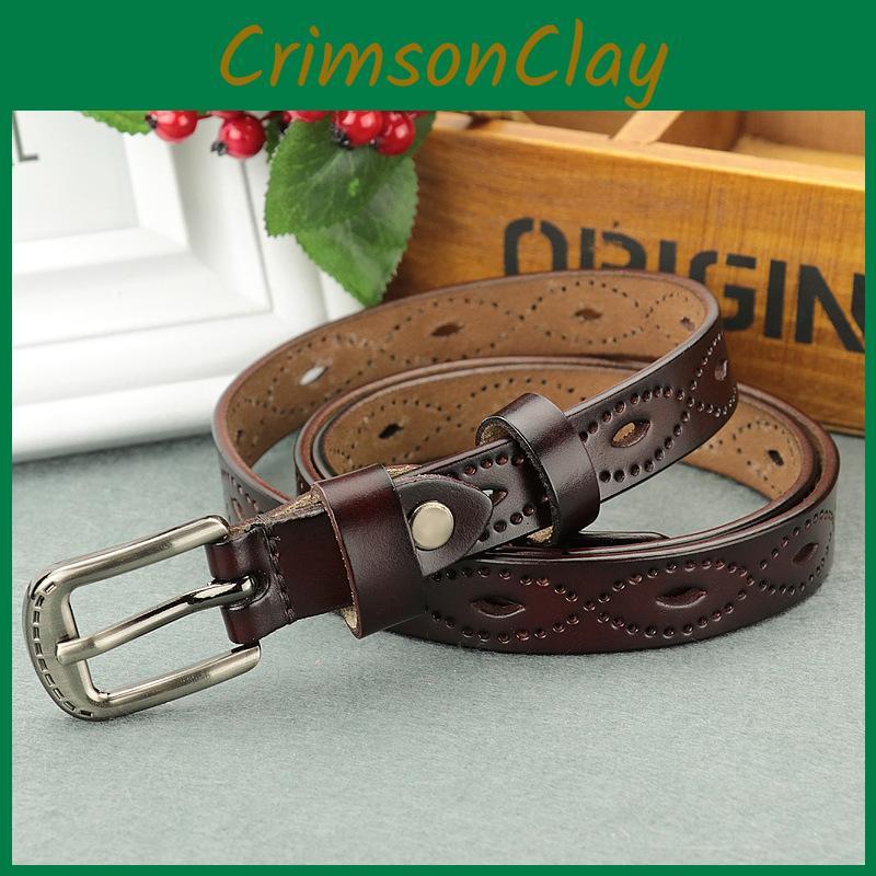 This genuine leather women's waist belt features a retro pin closure, combining durability with classic style. Crafted from two-layer cowhide, it measures less than 2cm in width and is available in lengths from 100cm to 120cm. The alloy pin buckle provides a secure, adjustable fit. Ideal for daily fashion, casual outings, or office wear, it adds a refined touch to any outfit. Wipe clean with a damp cloth to maintain its sleek appearance.