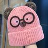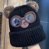 Cute Cartoon Bear Knitted Hat Women's Autumn and Winter New Warm Ear Protective Wool Hat Showing Face Small Pullover Hat Trendy