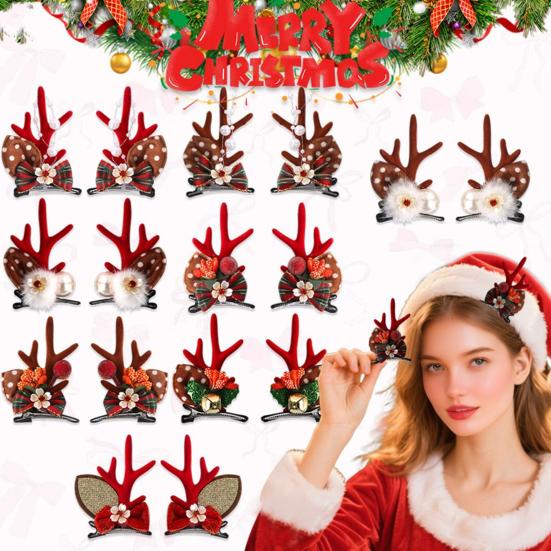 1 Pair Christmas Hairpins Holiday Antlers Design Faux Pearls Plush Ball Decor Hair Clips Christmas Party Photography Props